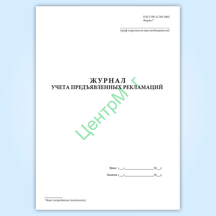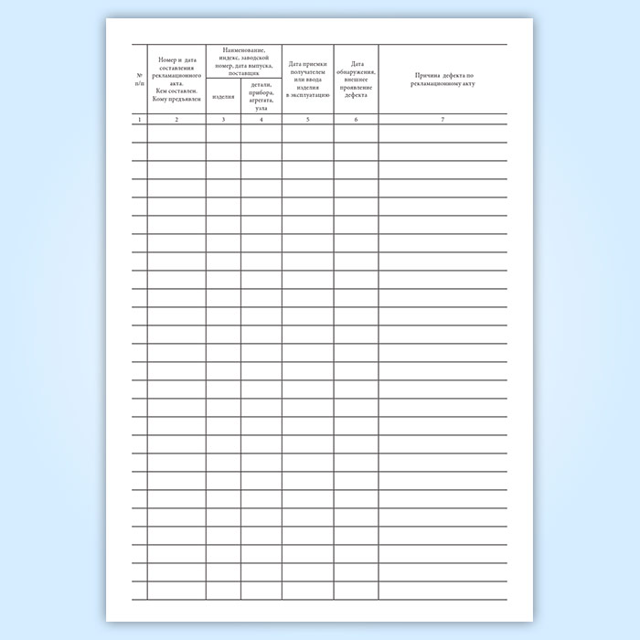 Журнал учета предъявляемых рекламаций (форма № 7)