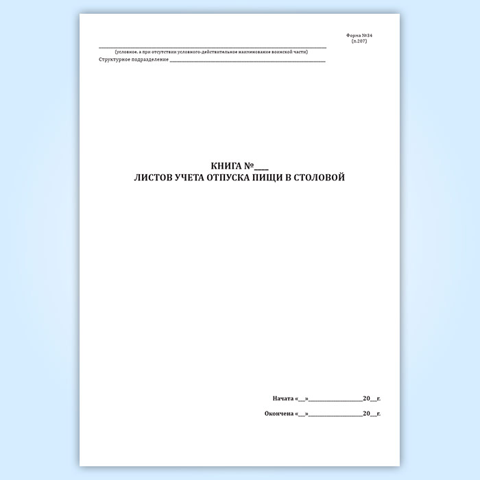 Книга листов учета отпуска пищи в столовой (форма 34)