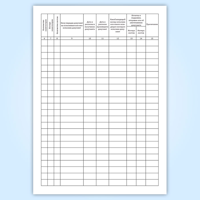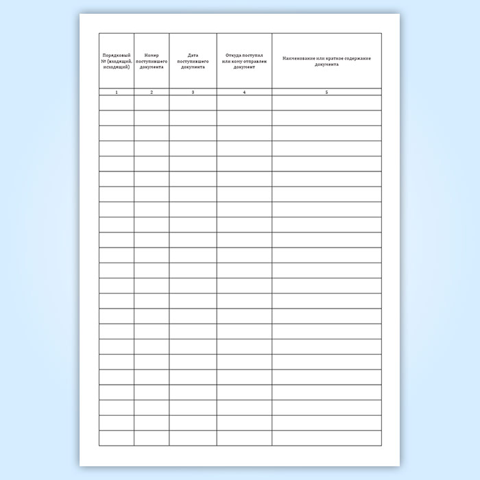 Форма журнала учета служебных документов соответствует Приложению №10 к Приказу Министра обороны РФ от 04.04.2017 N 170 " Об утверждении Инструкции по делопроизводству в Вооруженных Силах Российской Федерации" (вместе с " ИД-2017..." )