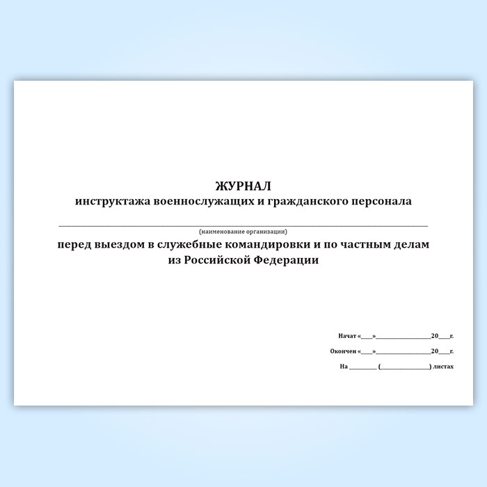 Журнал инструктажа военнослужащих и гражданского персонала перед выездом в служебные командировки и по частным делам из Российской Федерации