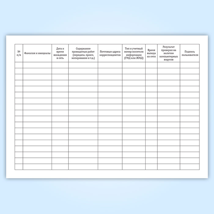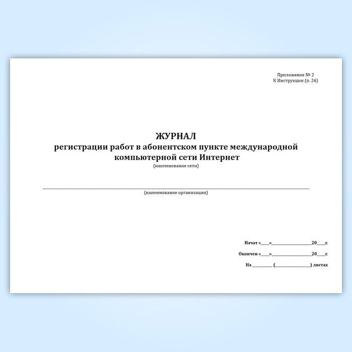 Регистрация работ в абонентском пункте международной компьютерной сети Интернет производится в журнале, в котором отражают информацию о содержании проводимых работ и результатах проверки на наличие компьютерных вирусов.