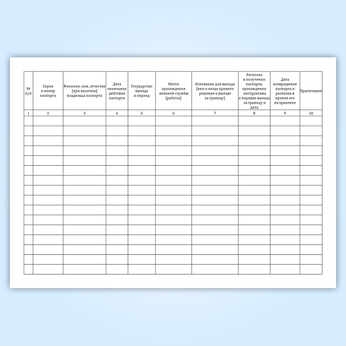 Учет выдачи заграничных паспортов производится в журнале с указанием серии, номера паспорта и основания для выезда.