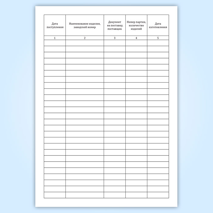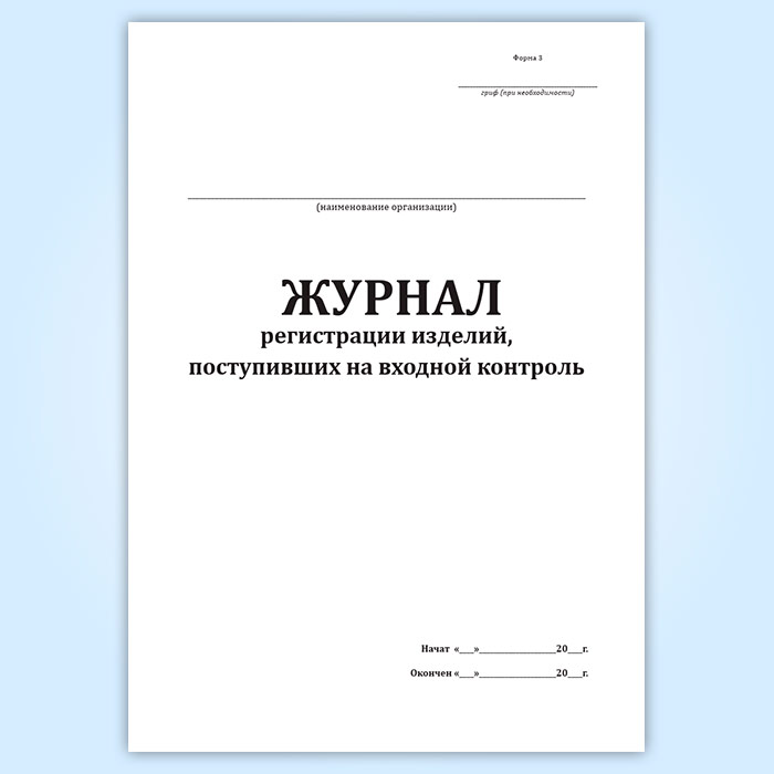 Журнал регистрации изделий, поступивших на входной контроль (форма 3)