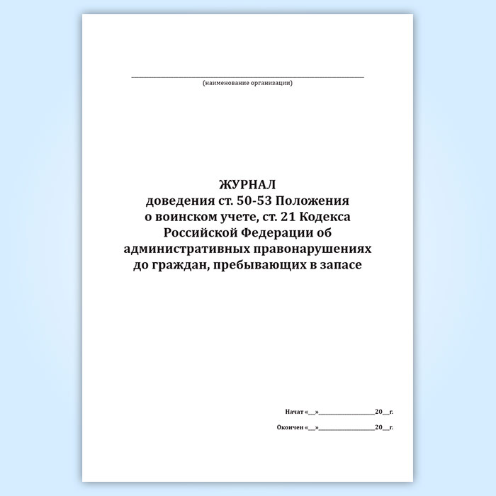 Журнал доведения ст. 50-53 Положения о воинском учете, ст. 21 Кодекса Российской Федерации об административных правонарушениях до граждан, пребывающих в запасе