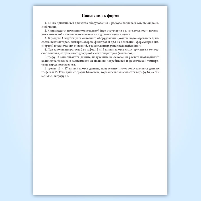 Книга применяется для учета оборудования и расхода топлива в котельной воинской части.