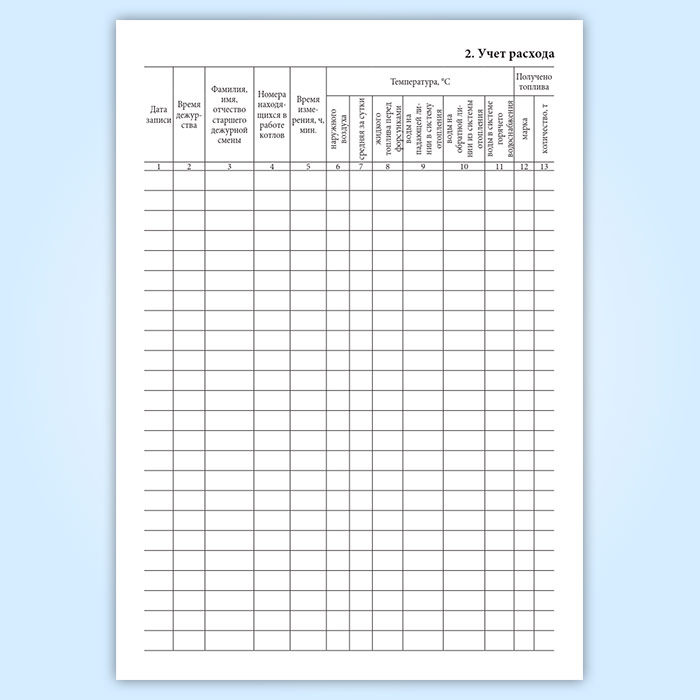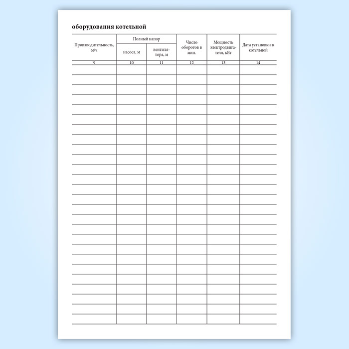 Книга учета оборудования и расхода топлива в котельной (форма № 39)