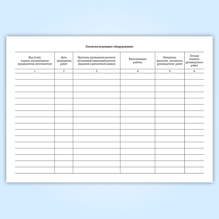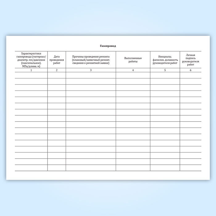 Журнал ремонта газопроводов и газоиспользующего оборудования
