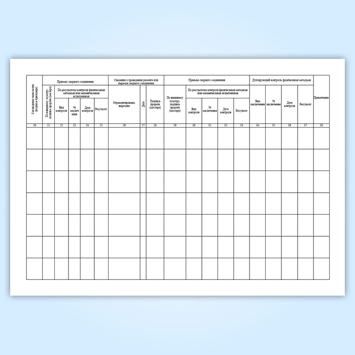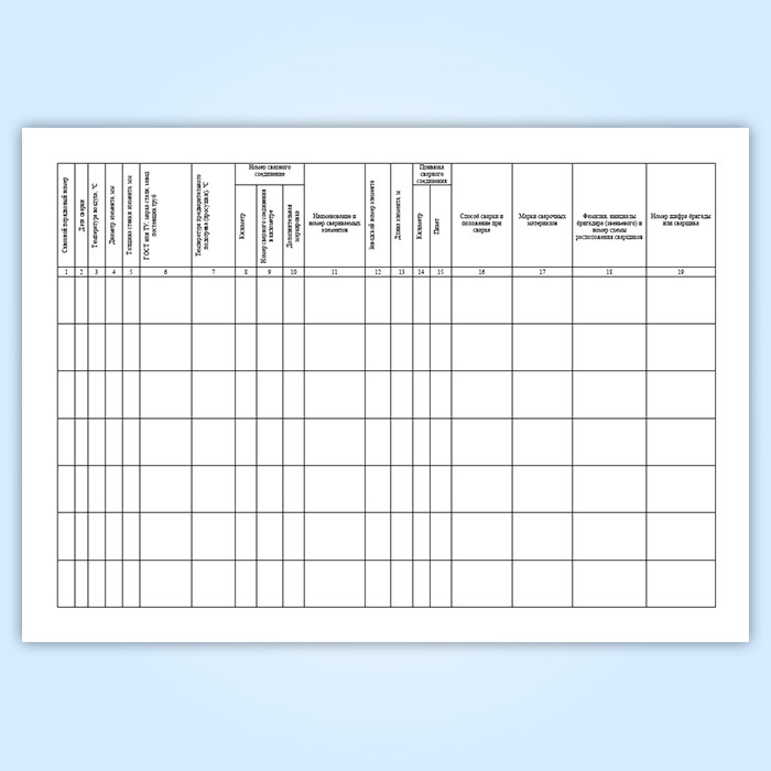 См. также журнал сварки сварных соединений, у которого на 10 граф больше.