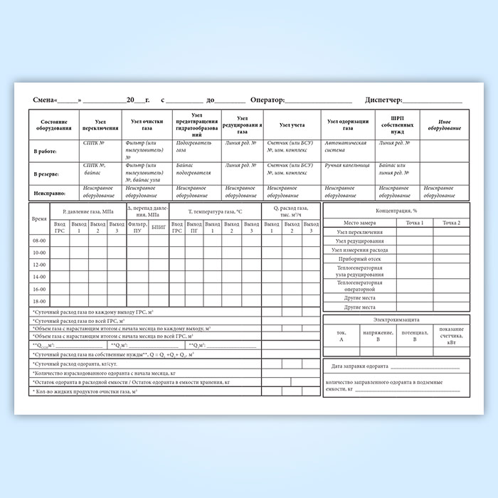 См. также Оперативный журнал газораспределительной станции, графы которого отличаются.