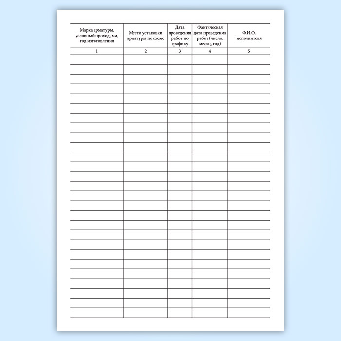 Журнал технического обслуживания и текущего ремонта запорной арматуры, установленной на газопроводах
