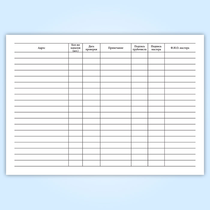 Журнал проверки состояния дымовых и вентиляционных каналов