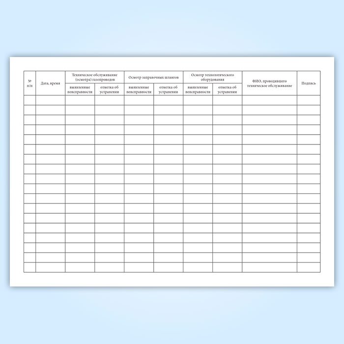 Журнал ежедневного технического обслуживания (осмотра) газопроводов, заправочных шлангов и технологического оборудования