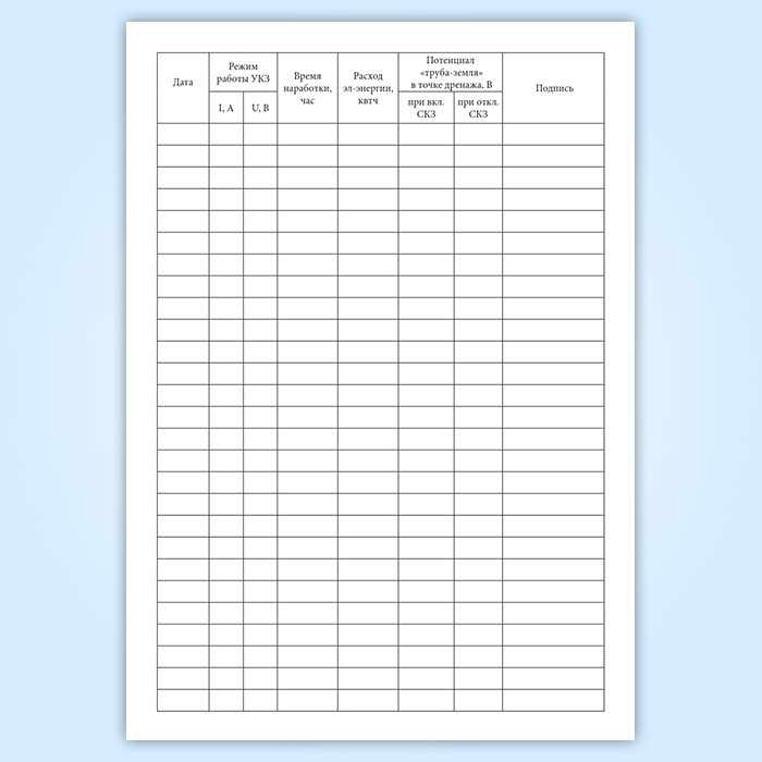 Полевой журнал учета работы установки катодной защиты