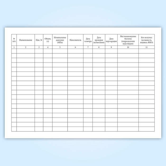 Журнал учета хранения и транспортирования баллонов со сжатыми, сжиженными и растворенными газами