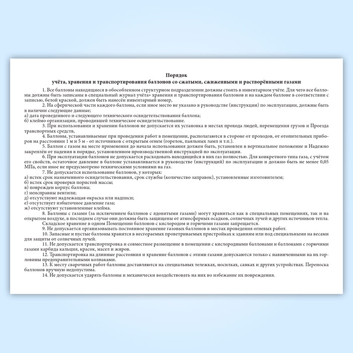 Порядок учета, хранения и транспортирования баллонов со сжатыми, сжиженными и растворёнными газами