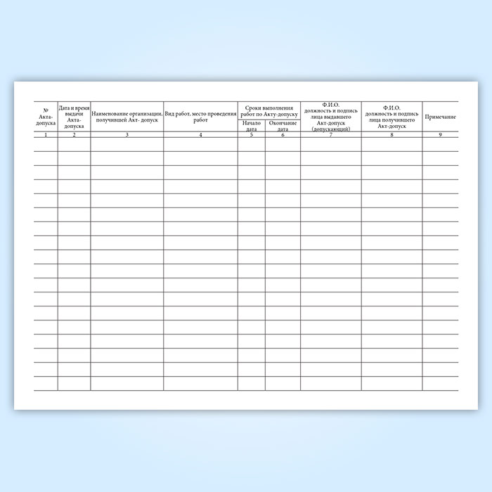 Журнал регистрации Акта-допуска на проведение работ имеет графы: