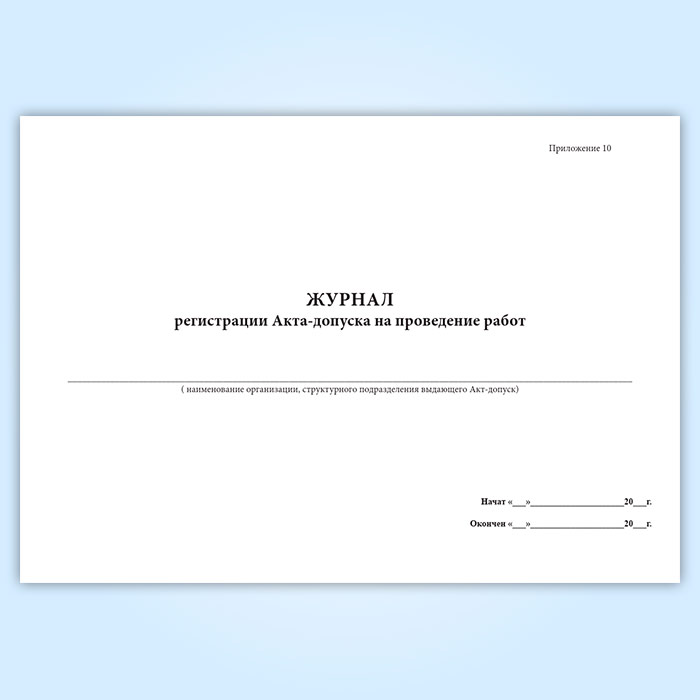 Форма журнала регистрации Акта-допуска на проведение работ соответствует Приложению №10 к Порядку допуска и организации безопасного производства работ подрядными организациями на опасных производственных объектах ООО «Газпром бурение»