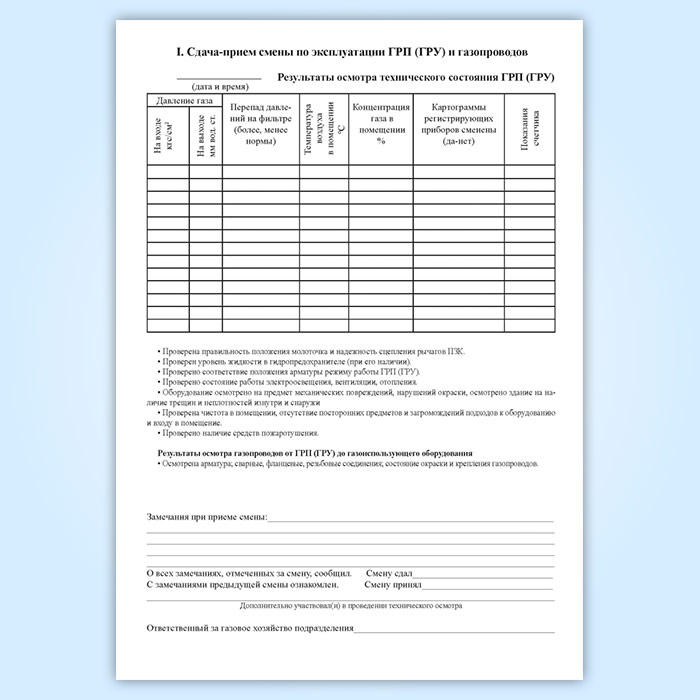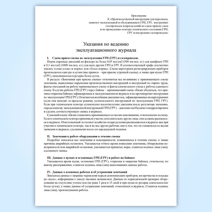 Эксплуатационный журнал ГРП (ГРУ) и газопроводов