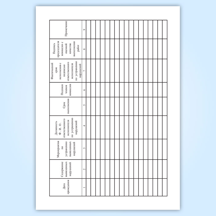 7. Фактический срок исполнения с подписью ответственного исполнителя по устранению нарушений