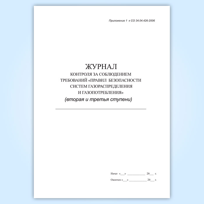 Журнал контроля за соблюдением требований Правил безопасности систем газораспределения и газопотребления (вторая и третья ступени)