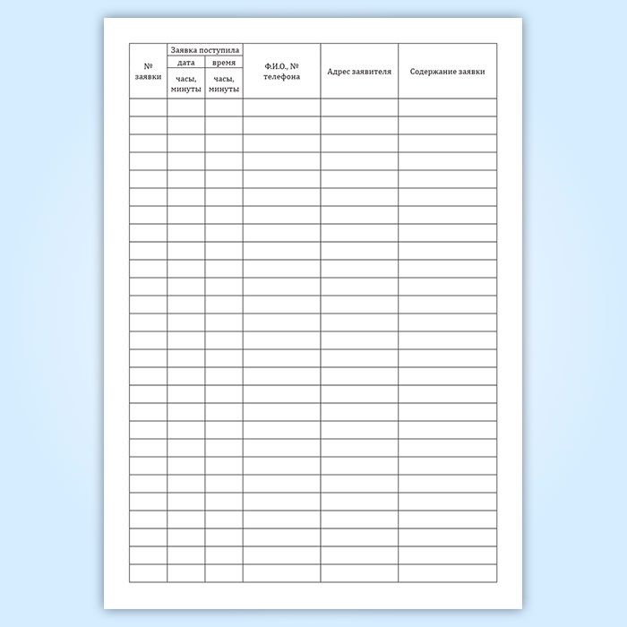 Журнал регистрации заявок о неисправности внутридомового газового оборудования и газопроводов имеет графы: