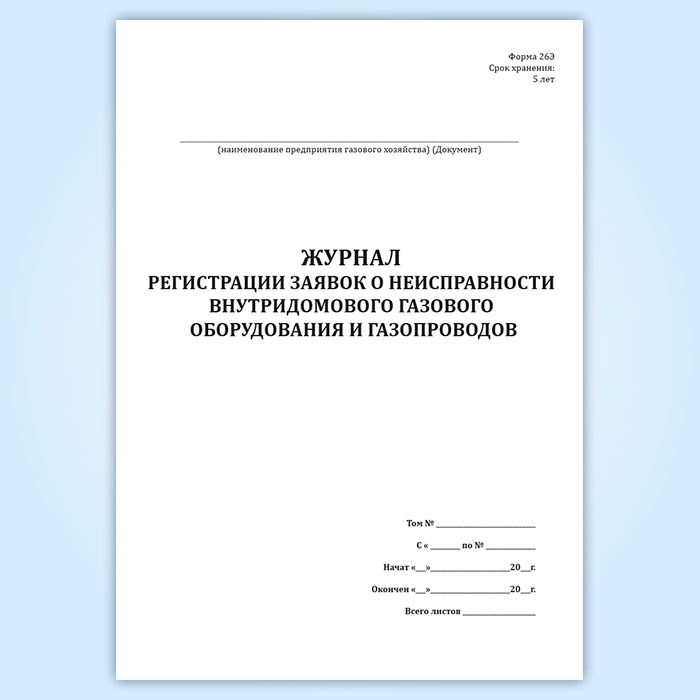 Журнал регистрации заявок о неисправности внутридомового газового оборудования и газопроводов (форма 26-Э)