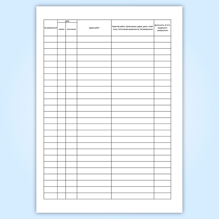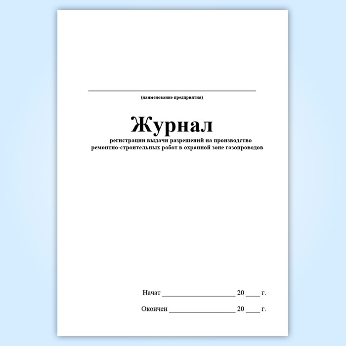 Журнал регистрации выдачи разрешений на производство ремонтно-строительных работ в охранной зоне газопроводов (ГЭГ-14)