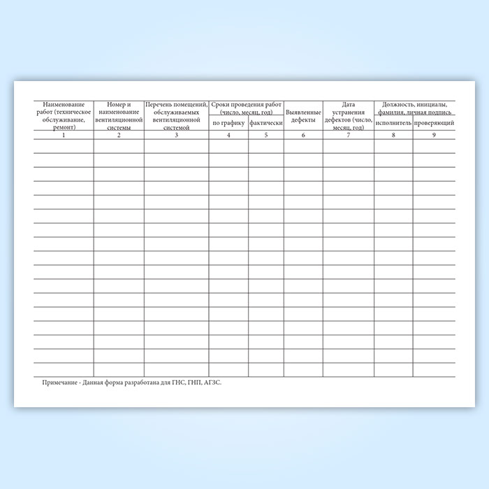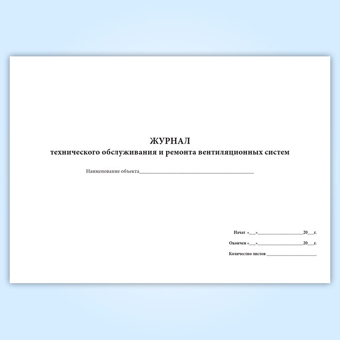 Журнал технического обслуживания и ремонта вентиляционных систем