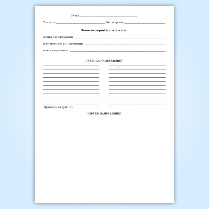 Форма журнала измерения горизонтальных направлений круговыми приемами (УТ-2) соответствует Приложению 3 к Пособию по составлению и оформлению документации инженерных изысканий для строительства. Часть 1. Инженерно-геодезические изыскания к СНиП II-9-78.