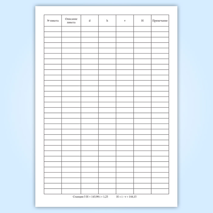 Журнал мензуальной съемки(Форма УТ-28) имеет графы: