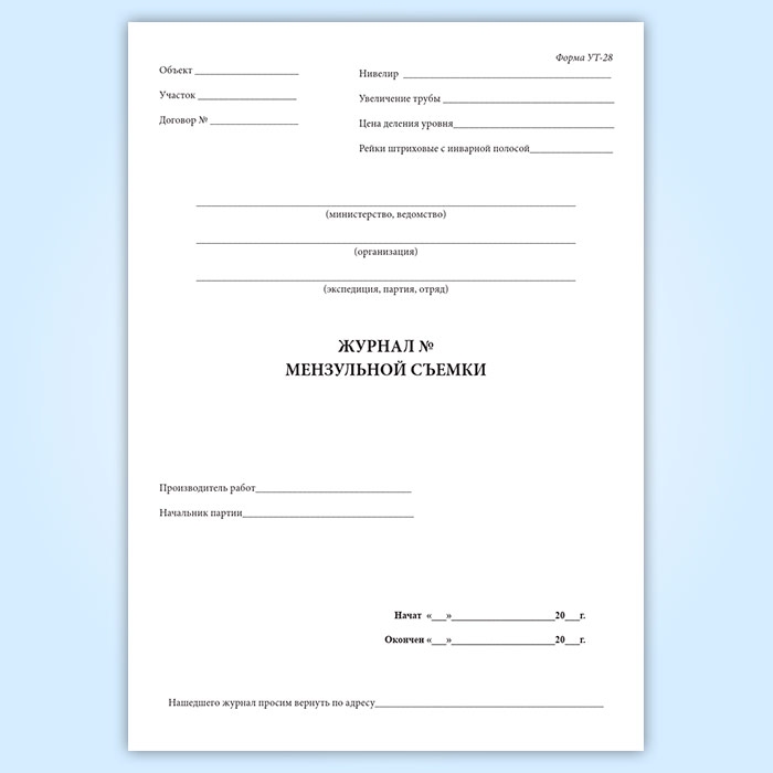 Журнал мензуальной съемки (форма УТ-28)