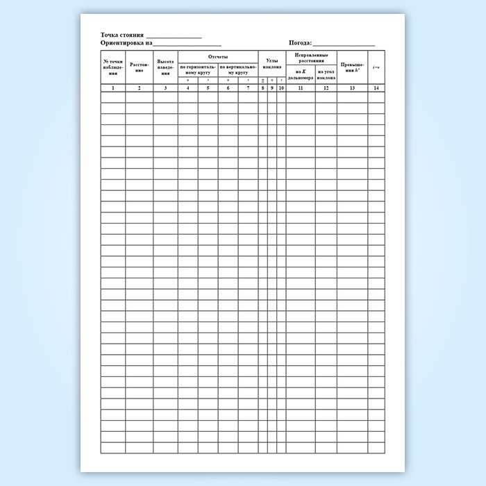 Полевой журнал тахеометрической съемки