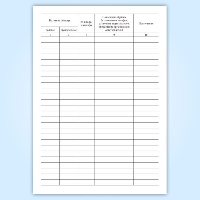 9. Назначение образца (изготовление шлифов, различные виды анализов, определение органических остатков и т.п.)