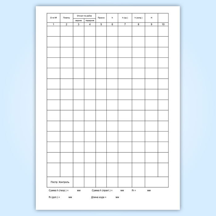 Журнал нивелирования трассы