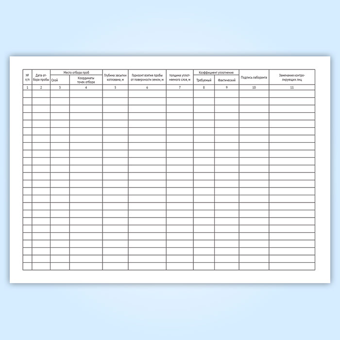 Журнал контроля плотности песчаного основания