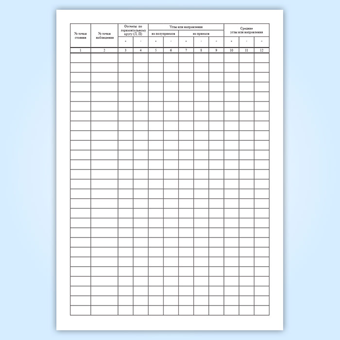 Журнал измерения углов имеет графы (столбцы):