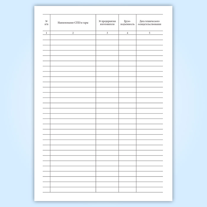 Журнал учета и осмотра съемных грузозахватных приспособлений и тары