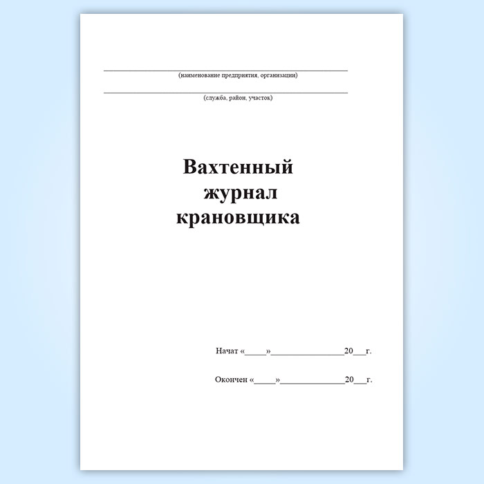 Вахтенный журнал крановщика можно пронумеровать, прошнуровать и подготовить к скреплению печатью на стадии его изготовления в типографии.