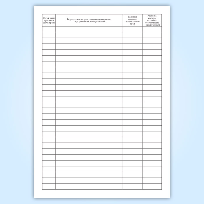 Вахтенный журнал для записи результатов осмотра грузоподъемной машины (крана) при приемке и сдаче машинистами (крановщиками)