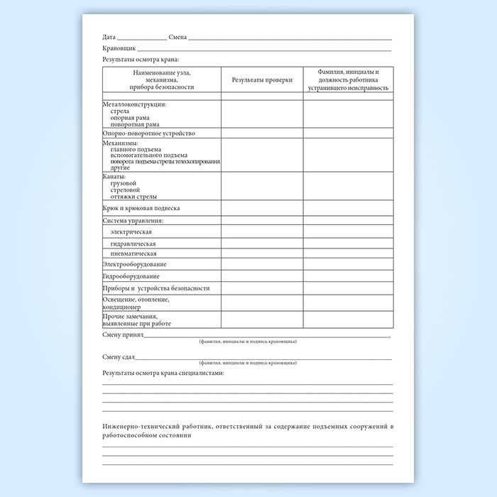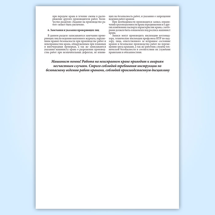 Вахтенный журнал приема-сдачи смен машинистами крана