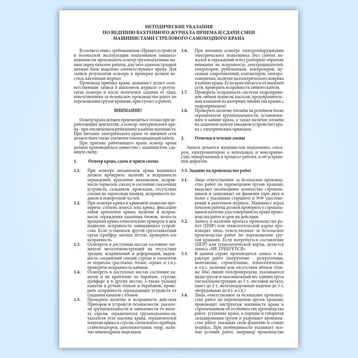 Методические указания по ведению вахтенного журнала приема и сдачи смен машинистами стрелового самоходного крана