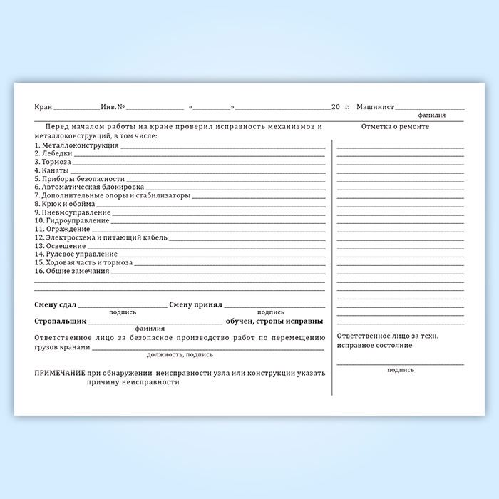 Вахтенный журнал г/п крана
