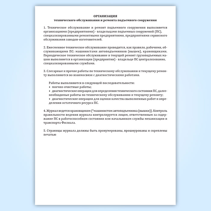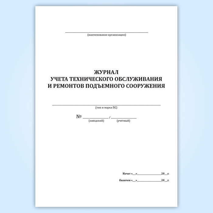 Журнал учета технического обслуживания и ремонтов подъемного сооружения