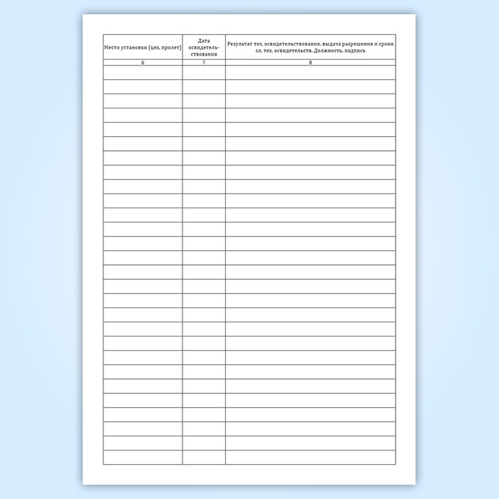 8. Результат тех. освидетельствования, выдача разрешения и сроки сл. тех. освидетельств. Должность, подпись