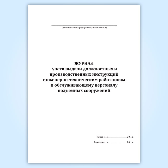 Журнал учета выдачи должностных и производственных инструкций инженерно-техническим работникам и обслуживающему персоналу подъемных сооружений