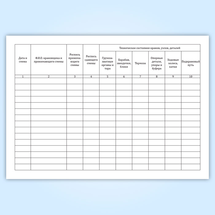 Вахтенный журнал приема-сдачи смен для мостовых и козловых кранов