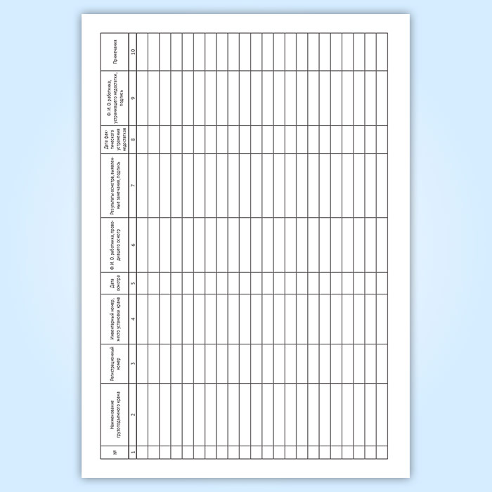 Журнал (ежедекадных) периодических осмотров грузоподъемных кранов имеет графы: