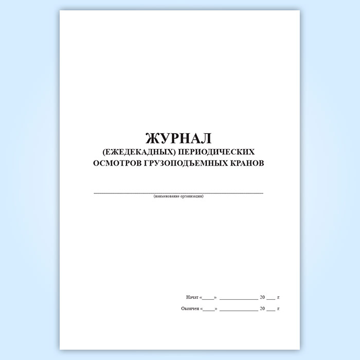 Форма журнала (ежедекадных) периодических осмотров грузоподъемных кранов устанавливается администрацией предприятия.