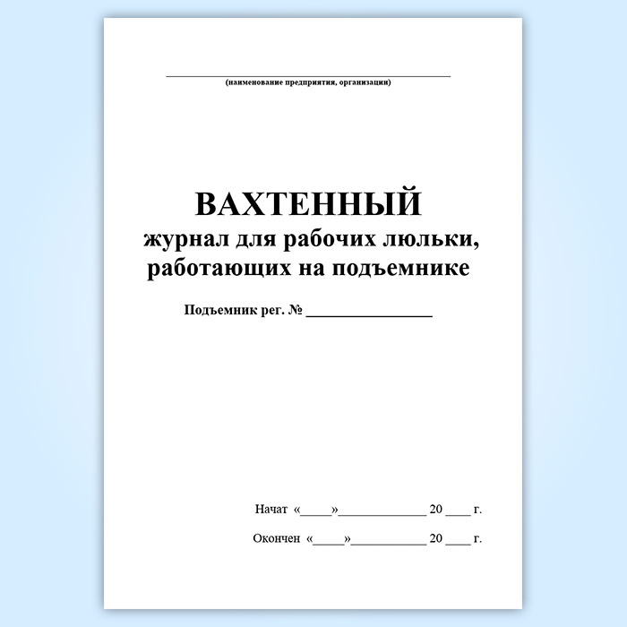 Вахтенный журнал для рабочих люльки, работающих на подъемнике