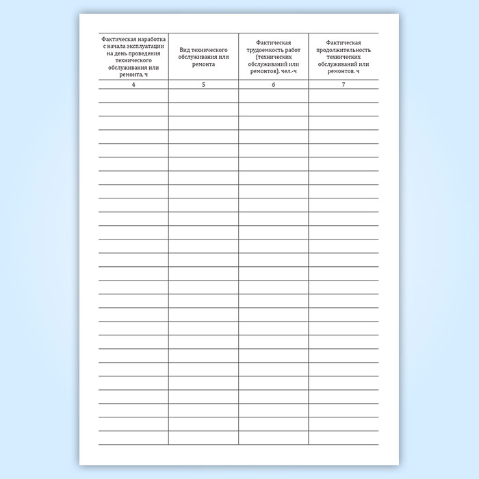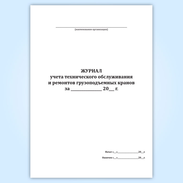 Форма журнала учета технического обслуживания и ремонтов грузоподъемных кранов соответствует Таблице 4 МДС 12-32.2007. Типовые нормы периодичности, трудоемкости и продолжительности технического обслуживания и ремонта грузоподъемных кранов.